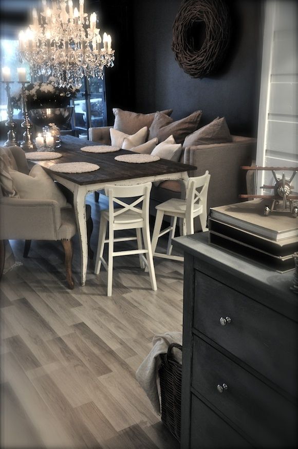 Shifting a table (kitchen table or a few end tables together) in front of the couch and bringing in the arm chairs adds a sense of luxury to your dinner party.